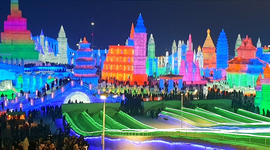 وتقام هذه التظاهرة الشتوية سنويا ضمن فعاليات مهرجان هاربين الدولي للجليد والثلج، حيث تستقطب ملايين السياح من داخل الصين وخارجها، بفضل مجسماتها الجليدية العملاقة المستوحاة من معالم معمارية عالمية، إلى جانب العروض الفنية والأنشطة الترفيهية الشتوية.