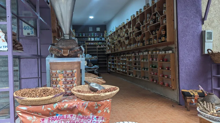 لك أن تختار بين هدايا متنوعة منتجة يدويا، مثل العسل الجبلي، والزعتر، زيت أركان، أو القبعات التقليدية والسلال المصنوعة من الدوم، أو الصابون البلدي.