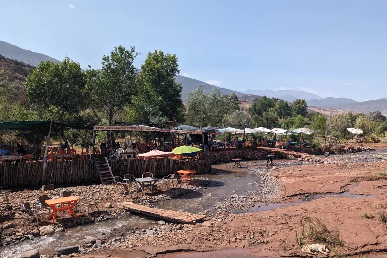 لا يحتاج المرء إلى الابتعاد كثيرا عن مدينة مراكش المغربية ليجد نفسه وسط نسيم عليل ومياه متدفقة تنبع من قمم الأطلس الكبير.